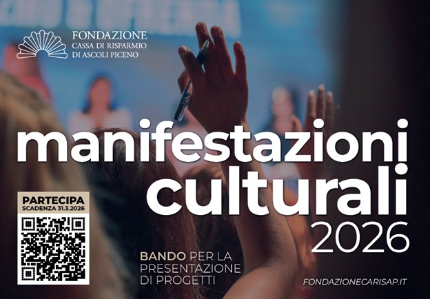 Ascoli Piceno, 25 febbraio 2026 – La Fondazione Cassa di Risparmio di Ascoli Piceno ha pubblicato oggi il bando “Manifestazioni culturali – 2026”, finalizzato a promuovere la fruizione attiva della cultura e l’accesso diffuso alle attività culturali.